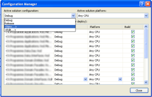 Alright to do this with an exiting soln, right click on you soln in VS and select âConfiguration ManagerâŚâ.